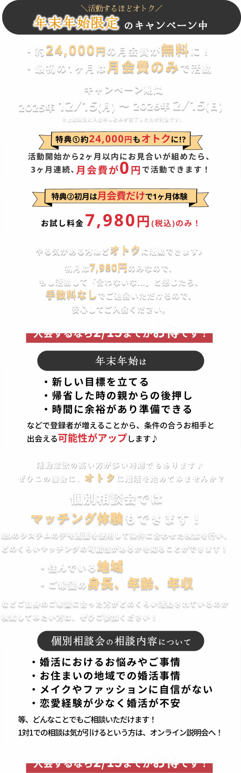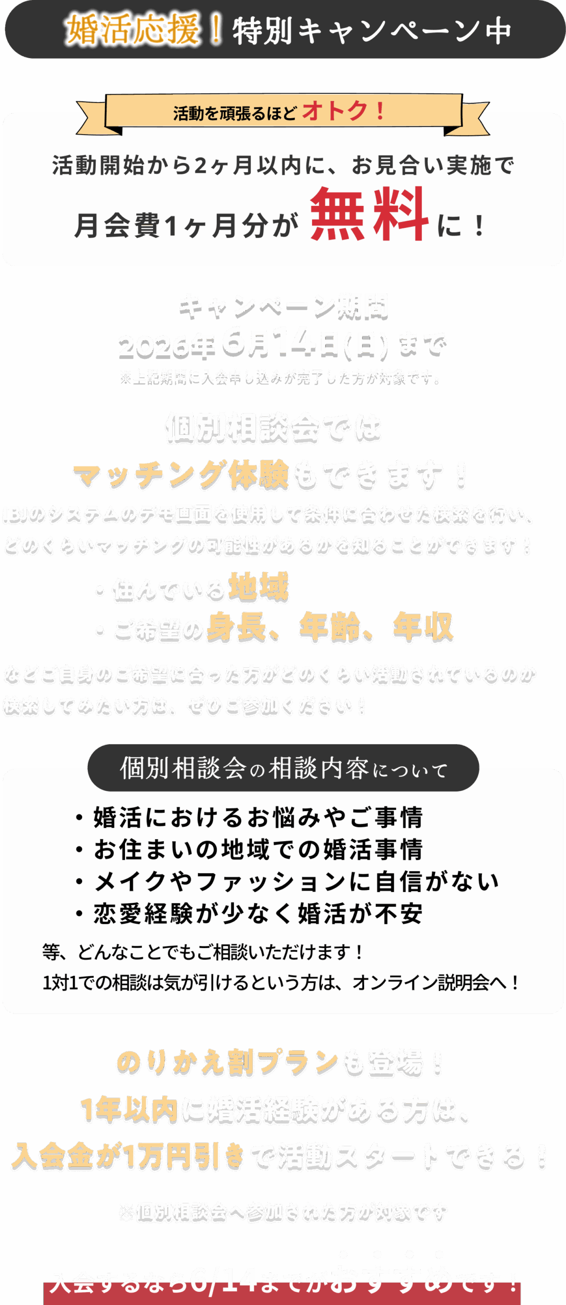 自分に合った婚活を始めるきっかけにしていただければと思います。