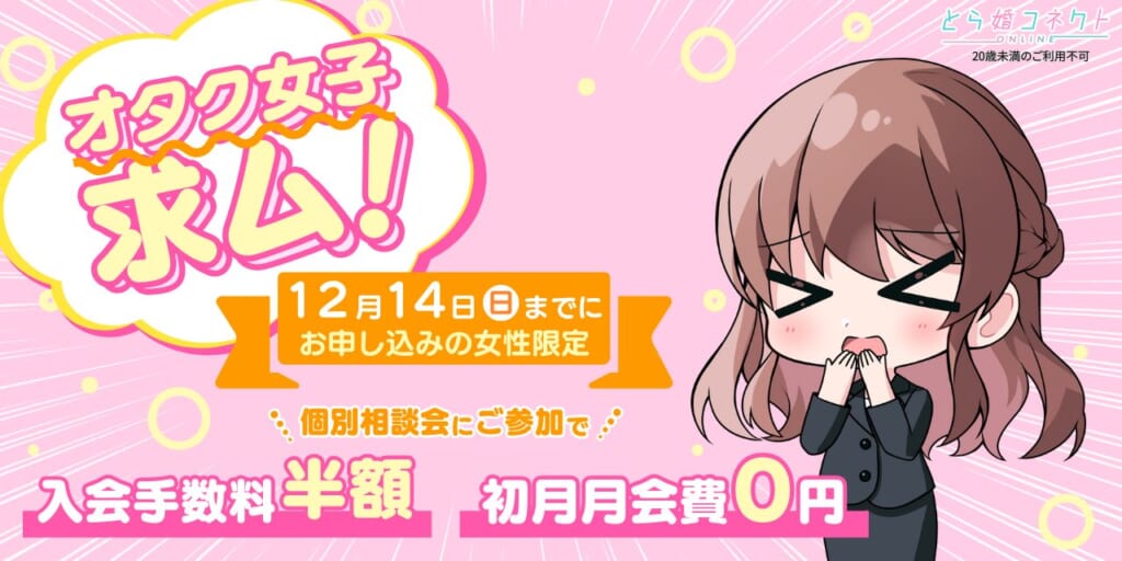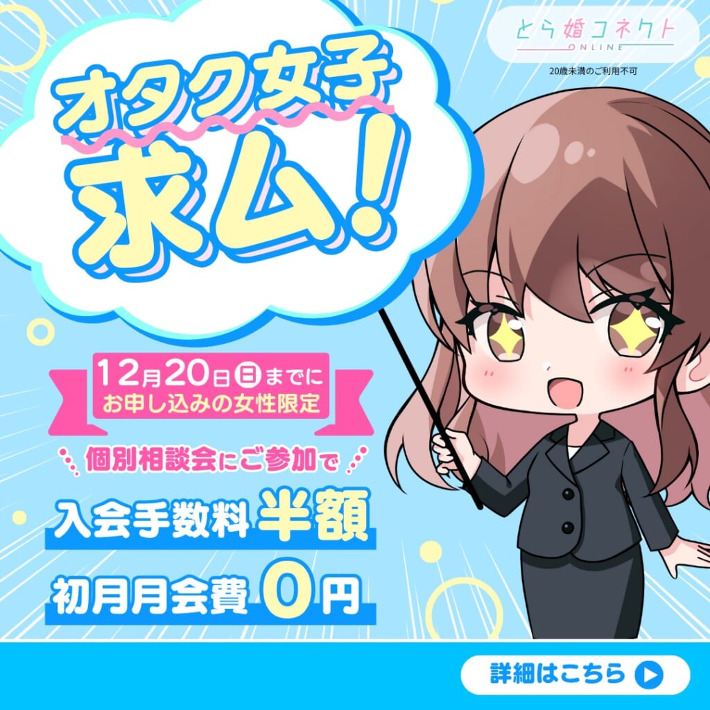 【女性限定】女性オタク求む!婚活応援キャンペーン!【12月14日(日)まで】